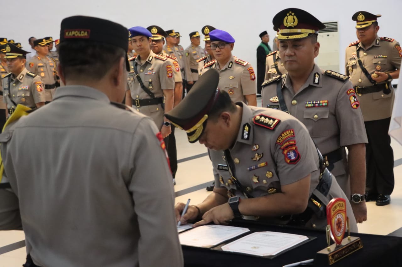 Upacara Sertijab digelar pada Aula Arya Dharma di Mapolda Kalteng, Jalan Tjilik Riwut Km. 1, Kota Palangka Raya, Kalimantan Tengah, yang dipimpin langsung oleh Kapolda, Irjen Pol. Drs. Djoko Poerwanto dan dihadiri Wakapolda dan PJU Polda Kalteng.