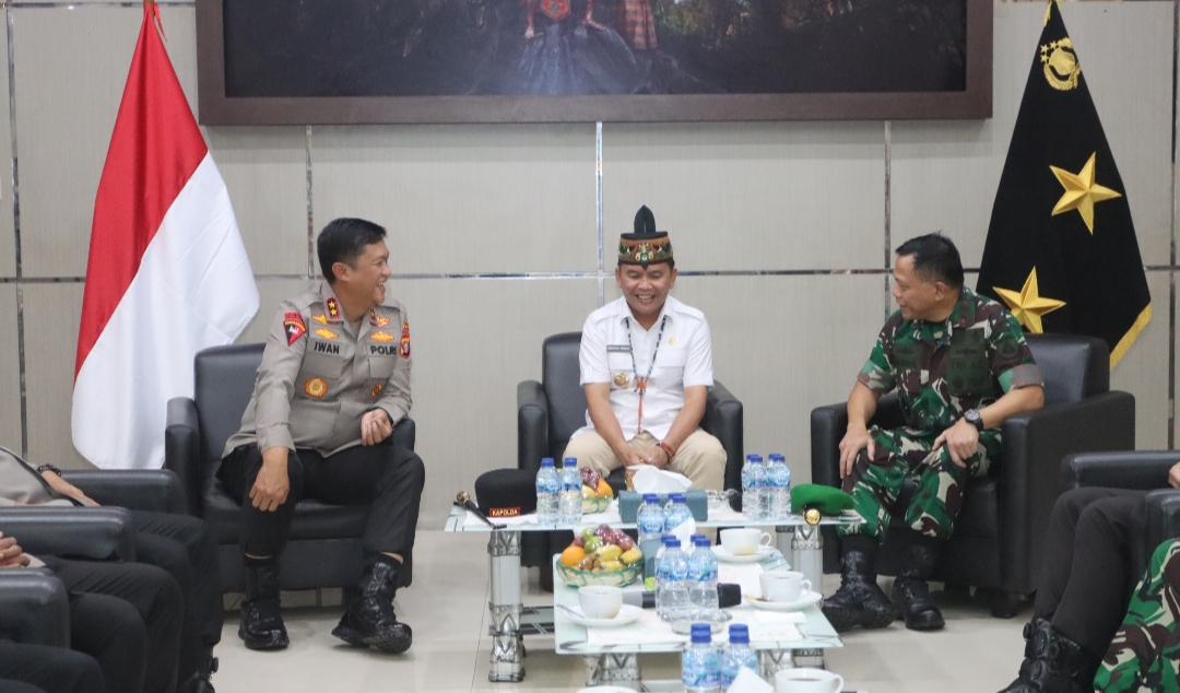 PALANGKA RAYA – Kapolda Kalimantan Tengah (Kalteng), Irjen Pol Iwan Kurniawan, S.IK., M.Si. menyambut hangat kunjungan Pangdam XXII/Tambun Bungai, Mayjen TNI Zainul Arifin, bersama Gubernur H. Agustiar Sabran, di Mapolda Kalteng, Jalan Tjilik Riwut Km.1, Kota Palangka Raya, Rabu (17/9/2025).