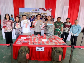 Lebih dalam, Kapolda membeberkan bahwa setelah dilakukan pemeriksaan mendalam terhadap isi bungkusan plastik di dalam tas tersebut, ditemukan sebanyak 44 bungkus yang diduga berisi narkotika jenis sabu seberat 46,7 kilogram.