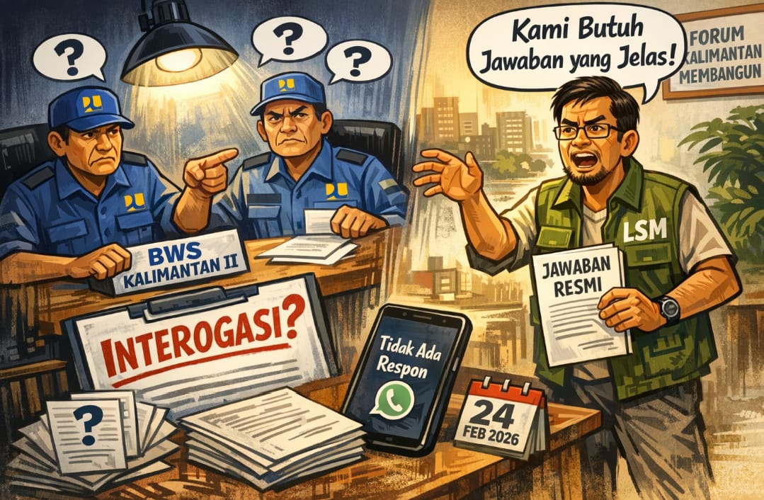 PALANGKA RAYA — Proses klarifikasi yang dilakukan pihak Balai Wilayah Sungai Kalimantan II (BWS) Palangka Raya menuai sorotan dari Lembaga Swadaya Masyarakat (LSM). Ketua LSM Forum Kalimantan Membangun, Supriyady Natae, menilai mekanisme klarifikasi yang digelar instansi tersebut tidak mencerminkan upaya penjelasan, melainkan terkesan seperti interogasi.