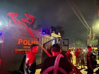Respon Cepat, Ditsamapta Polda Kalteng Bantu Padamkan Kebakaran Toko Elektronik UFO